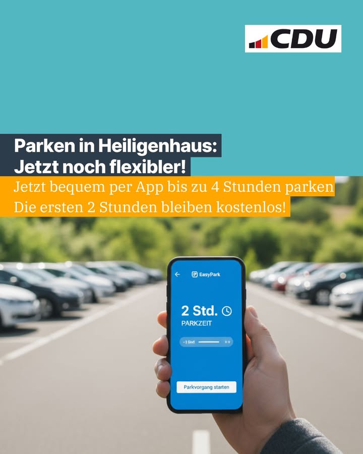 mehr🚗 Gute Nachrichten für alle, die in der Heiligenhauser Innenstadt parken!Ab dem 31. Oktober wird das Parken in unserer Innenstadt noch flexibler ? und das Beste: Die bewährten 2 Stunden Gratis-Parken mit Parkscheibe bleiben einfach erhalten! 👍Was ist NEU? Wenn?s beim Arztbesuch, im Café oder beim Bummeln mal wieder länger dauert, könnt ihr eure Parkzeit jetzt ganz entspannt per EasyPark-App auf bis zu 4 Stunden verlängern (kostenpflichtig).Wusstest Du? Diese flexible Lösung war eine Initiative von uns! 💡 Bereits 2023 hat unsere CDU-Fraktion den Antrag gestellt, um das Parken für euch einfacher zu machen und unsere lokale Gastronomie und den Einzelhandel zu stärken.Probleme erkennen, Lösungen anpacken. SO! geht Heiligenhaus.👉 Wo das gilt? In der Parkzone 2 (z.B. Basildonplatz, Kettwiger Str., Schleifenparkplatz). Auf der Hauptstraße bleibt?s bei einer halben Stunde, um Parkplätze für kurze Erledigungen in unmittelbarer Nähe zu den Geschäften freizuhalten.Alle Informationen der Stadtverwaltung findet ihr hier: http://heiligenhaus.de/parken