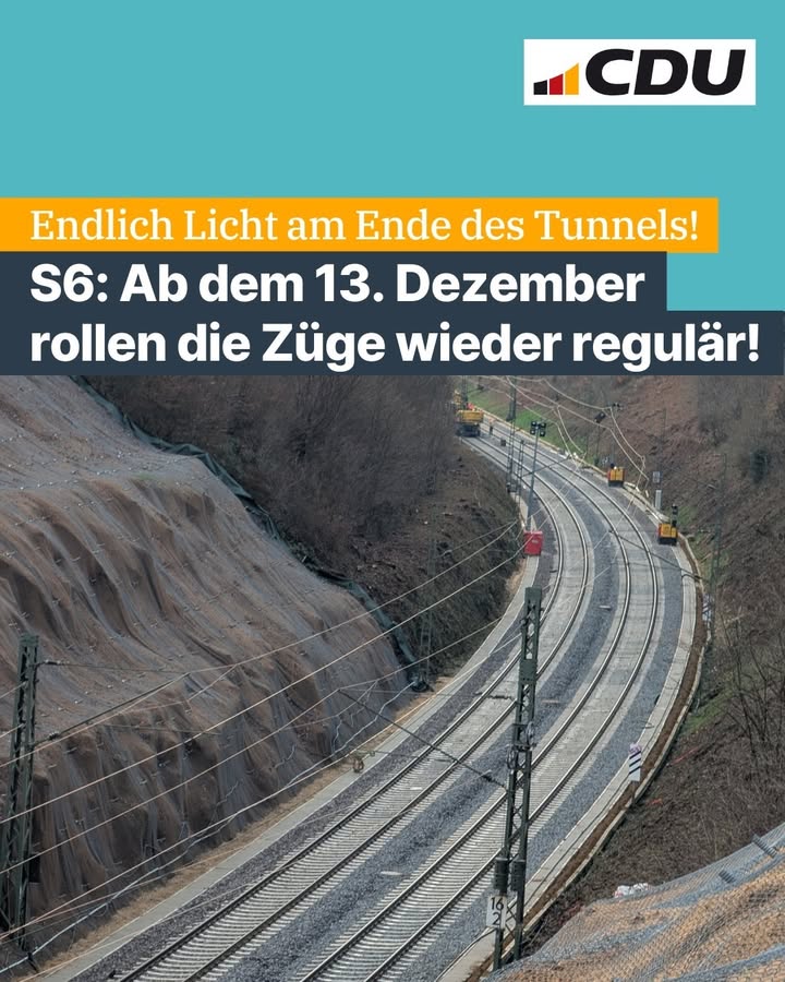 Freie Fahrt für die S6 ab dem 13.12.! 🚅💨Endlich Licht am Ende des Tunnels! 🕯️ Wir waren heute gemeinsam mit unserem Landtagsabgeordneten Dr. Jan Heinisch MdL und Bürgermeister Björn Kerkmann direkt vor Ort an der S6-Baustelle zwischen Hösel und Kettwig. Der Eindruck: Hier wurde in den letzten Monaten Schwerstarbeit geleistet.Das Wichtigste zuerst: Ab dem 13. Dezember 2025 rollen die Züge wieder regulär! ✅Die lange Geduldsprobe für viele Pendlerinnen und Pendler aus Heiligenhaus hat ein Ende. Besonders beeindruckend ist, dass die Strecke knapp 6 Monate früher fertig wird, als ursprünglich befürchtet ("Mitte 2026").Natürlich waren die fast zwei Jahre ohne S6 eine echte Belastungsprobe für uns alle. Aber wer heute wie wir direkt an der Baustelle stand, der sieht sofort: Das Warten war nicht umsonst. Hier wurde nicht einfach nur geflickt, sondern massivste Ingenieursarbeit geleistet, um den Hang für die Zukunft sicher zu machen. Wenn man vor den riesigen Sicherungswänden steht, wird einem erst klar, welche gewaltigen Erdmassen hier bewegt und gesichert wurden.Hier die Fakten zur Baustelle: 🏗️ ca. 40-45 Mio. ? Gesamtinvestition wurden hier verbaut (davon allein ca. 15 Mio. ? für die Hangsicherung). ⛰️ Halt & Natur: 10.000 m² Spezialnetz und bis zu 11 Meter tiefe Anker halten den Hang fest. In die Oberfläche sind zudem spezielle Matten mit Saatgut eingearbeitet ? in gut zwei Jahren wird der Hang also wieder komplett grün sein! 🌿 🛤️ 15 km Gleise, 6 Weichen, 33 Signale und 80 km Datenkabel wurden komplett erneuert. 🌊 Ein völlig neues Entwässerungssystem schützt die Strecke künftig vor Starkregen.Ein riesiges Danke an die Bautrupps, die hier bei Wind und Wetter gearbeitet haben und an alle Beteiligten, die beim Genehmigungsverfahren aufs Gaspedal getreten haben (4 Monate statt üblicherweise über ein Jahr!). 💪Wir freuen uns, dass die Verbindung nach Essen und Düsseldorf endlich wieder steht.